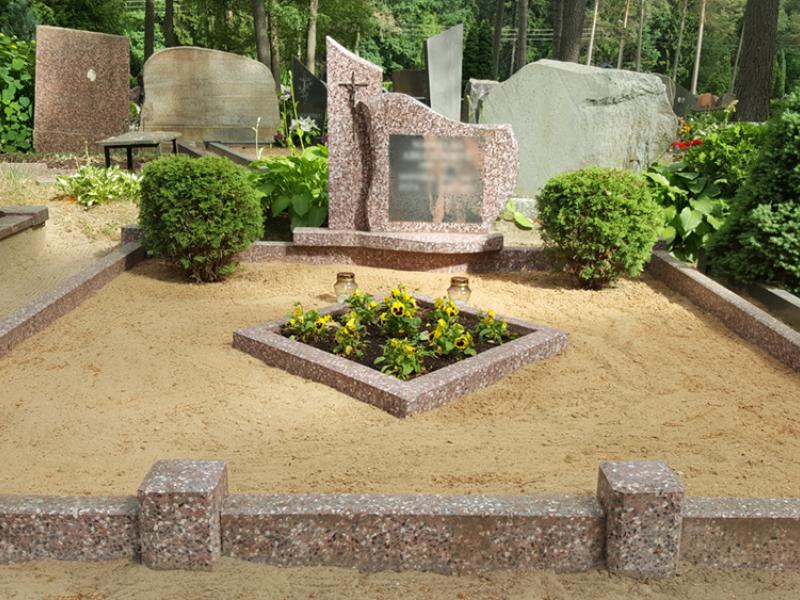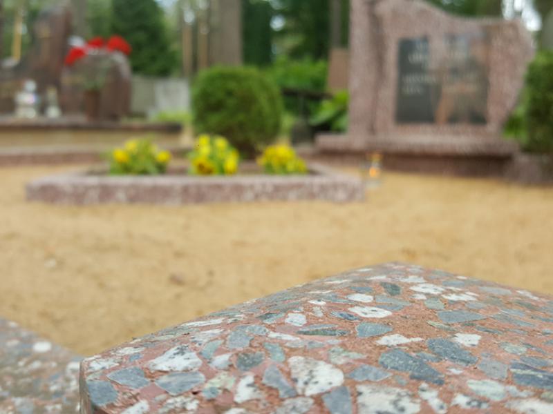 Paminklas ir tvorelė pagaminti iš teraco (mozaikinio betono).